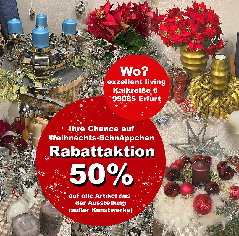 50 % auf alle Ausstellungsstücke, außer Kunst!